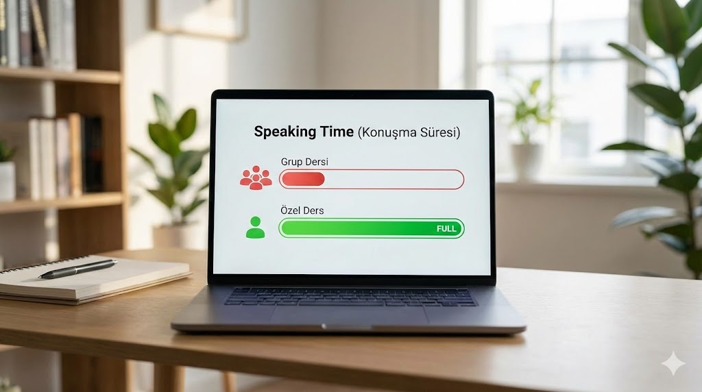 Ancak birebir online İngilizce özel ders aldığınızda, sahne %100 sizindir. 40 dakikalık dersin tamamında aktifsinizdir. "Arka sırada saklanma" şansınız yoktur. Bu yoğun maruziyet, online özel dersi öğrenme hızı bakımından yüz yüze kurslardan 4-5 kat daha verimli kılar.